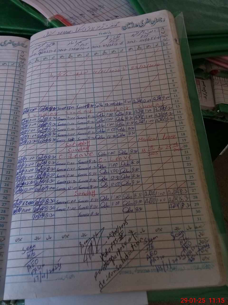 | Leave | Duty | Absent | Maternity | Medical | Ex- Pak |