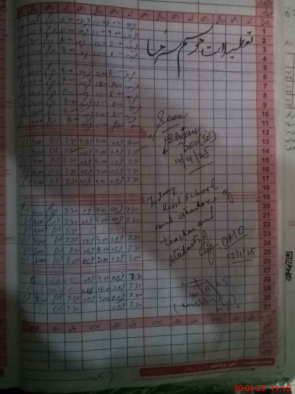 | CNIC | Full Name | Designation | R/C | Absence During Last Calender Month |