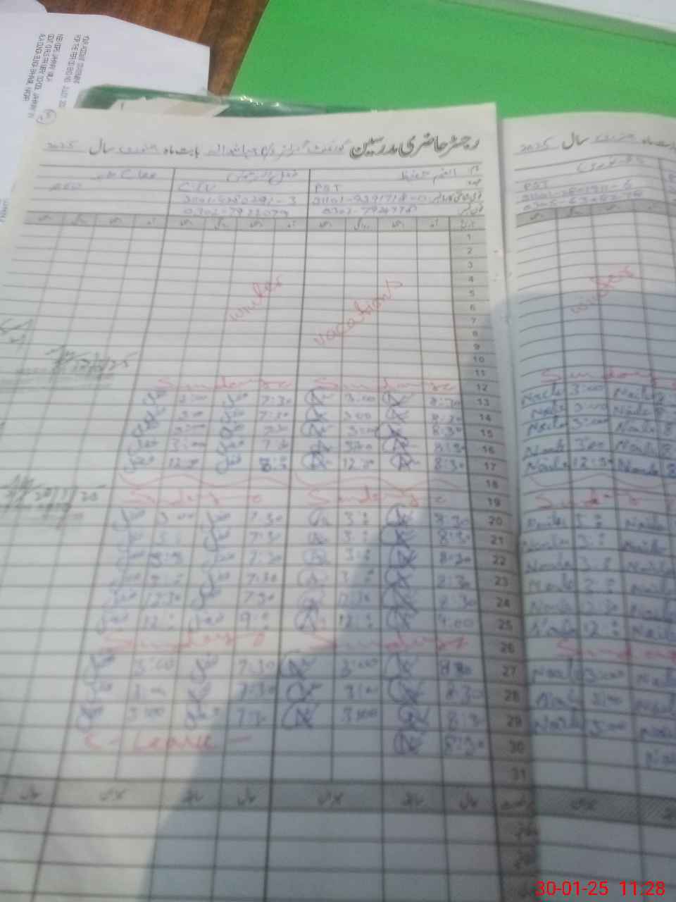 | CNIC | Full Name | Designation | R/C | Absence During Last Calender Month |