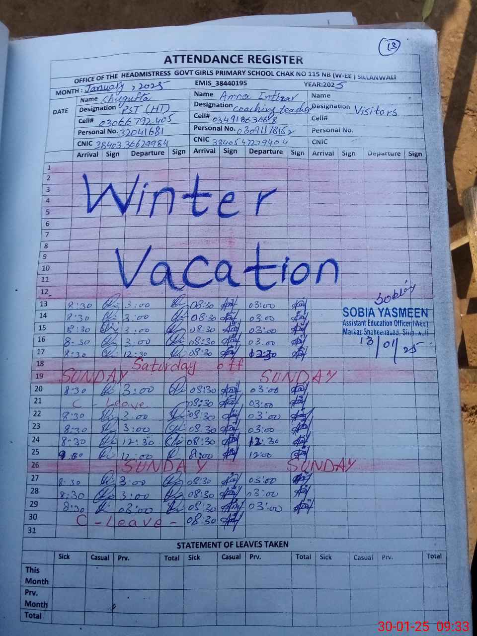 | Name: SH**** Designation: (School Headmaster's/Headmistress's) PST (ARTS) Phone/Cell Number: 03**** |