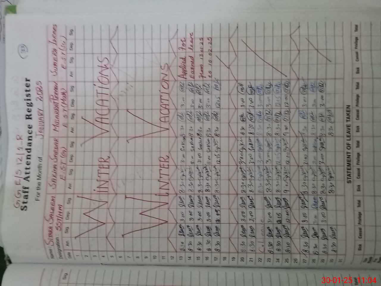 | Leave | Duty | Absent | Maternity | Medical | Ex- Pak |
