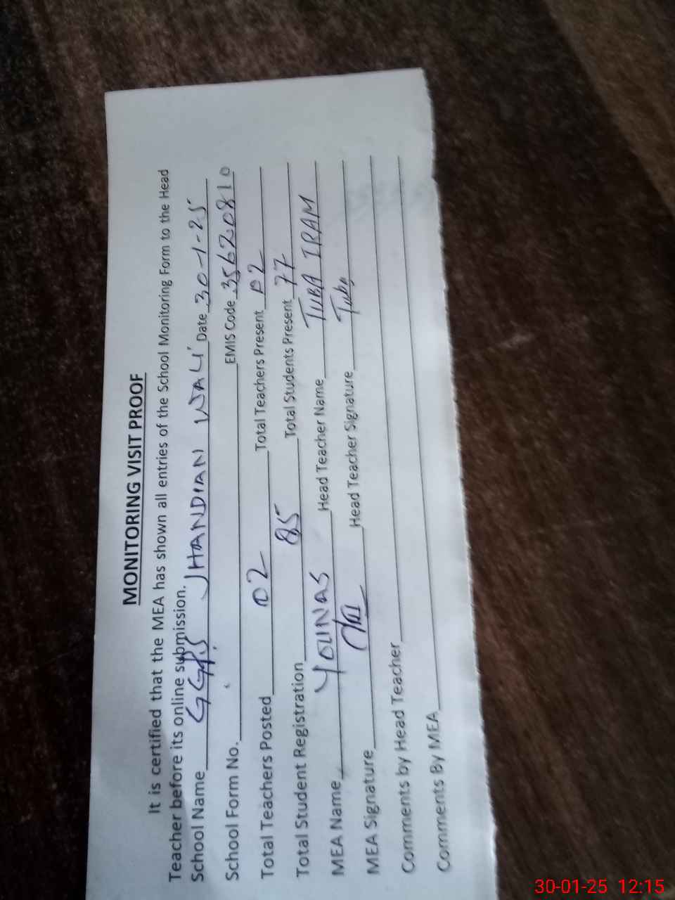 | EMIS Code: 35620810 | Name of School: GGPS JHANDIAN WALI | |||