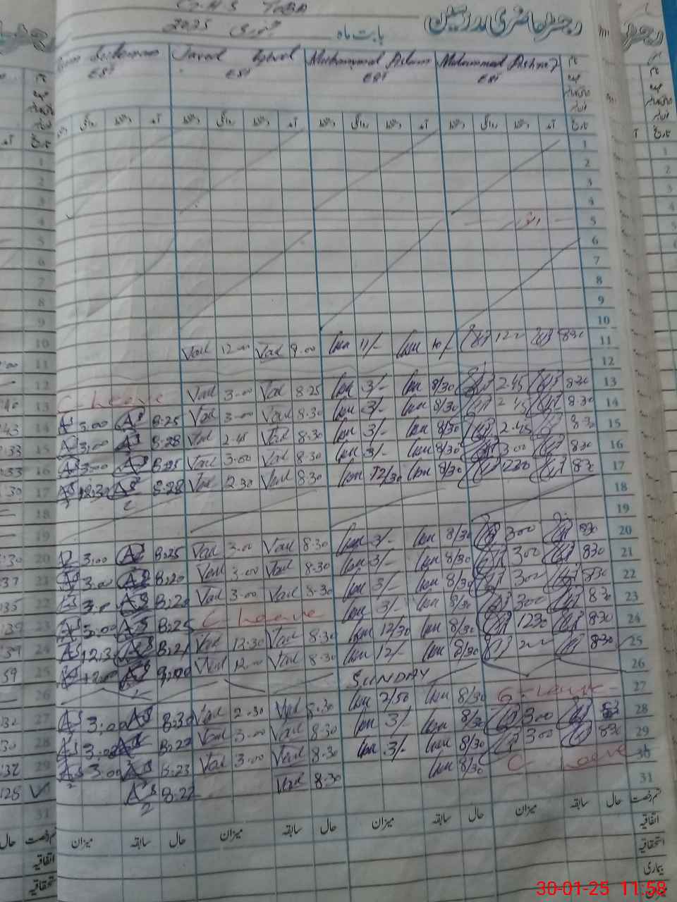 | CNIC | Full Name | Designation | R/C | Absence during last cal. month |