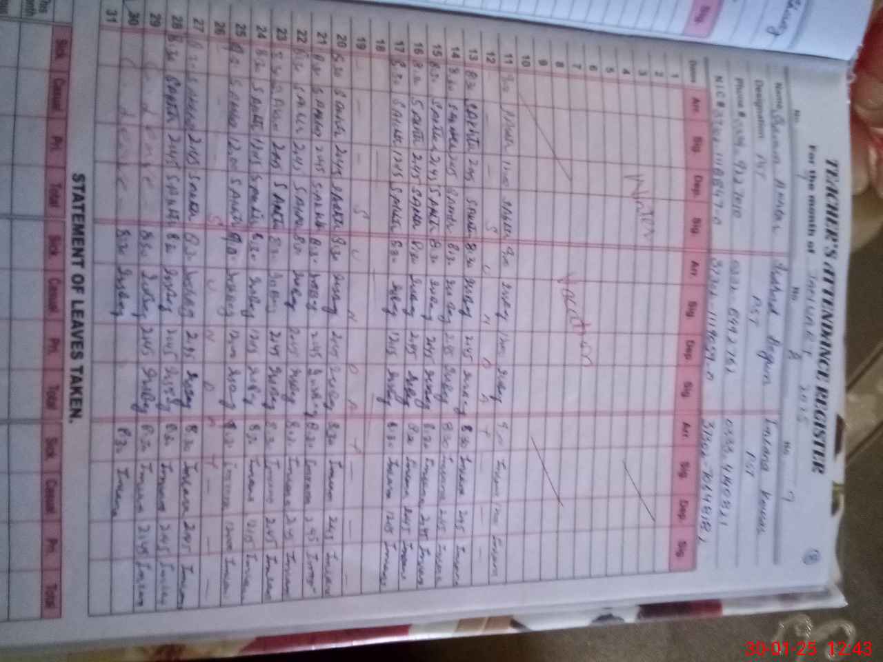 | No. of Students Present - Female | 16 | 0 | 22 | 28 | 29 | 33 | 28 | 30 | 25 | 35 | 28 | 20 | 18 | 312 | ||