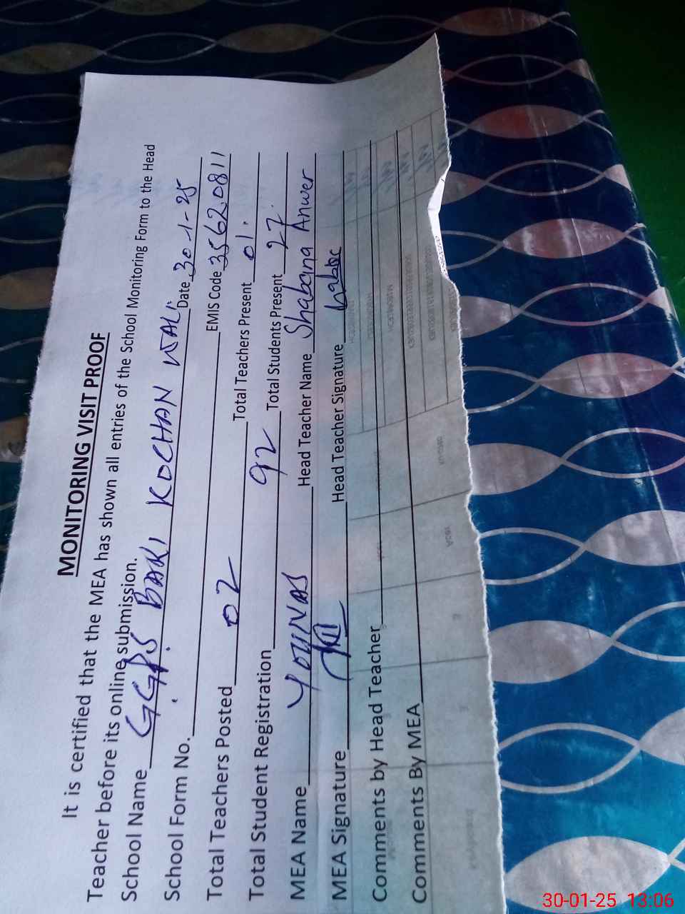 | EMIS Code: 35620811 | Name of School: GGPS BARI KACHAN WALI CHAK NO 171 | |||