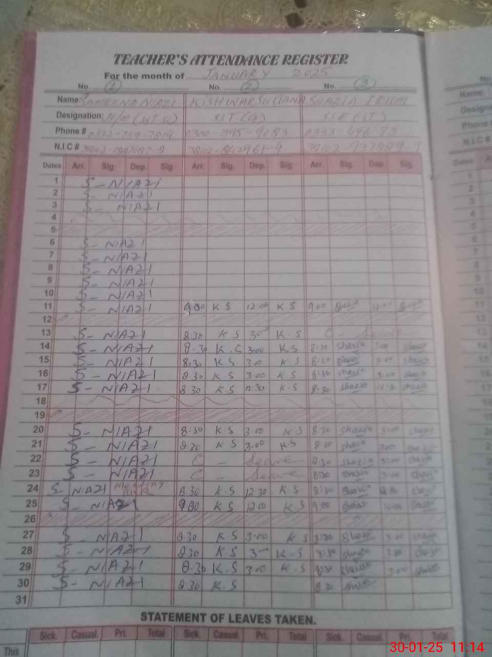 | 38**** | Mo**** Ab**** | NAIB QASID | Regular | 0 | 0 | 0 | 0 | 0 | 0 | 0 | 0 | 0 | Absent (Un-Authorized) |