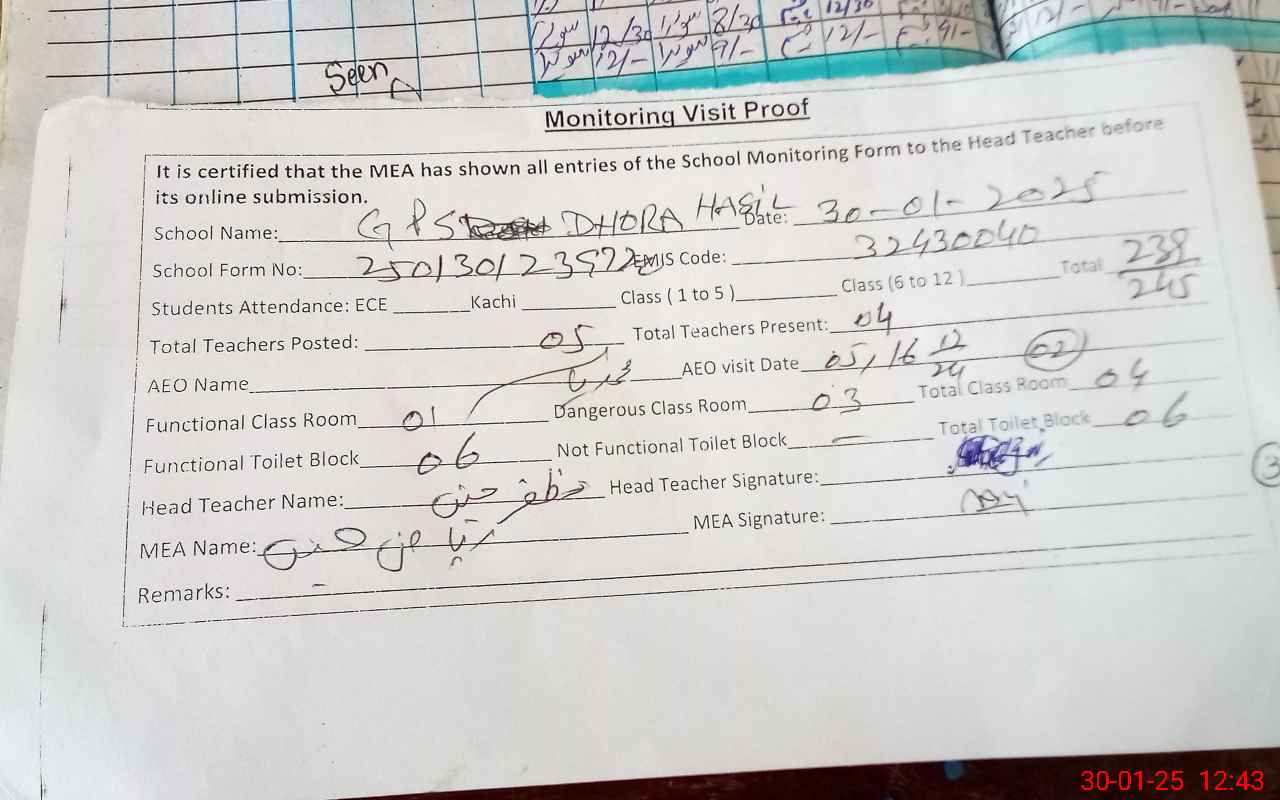 | EMIS Code: 32430040 | Name of School: GPS DHORA HASIL | |||
