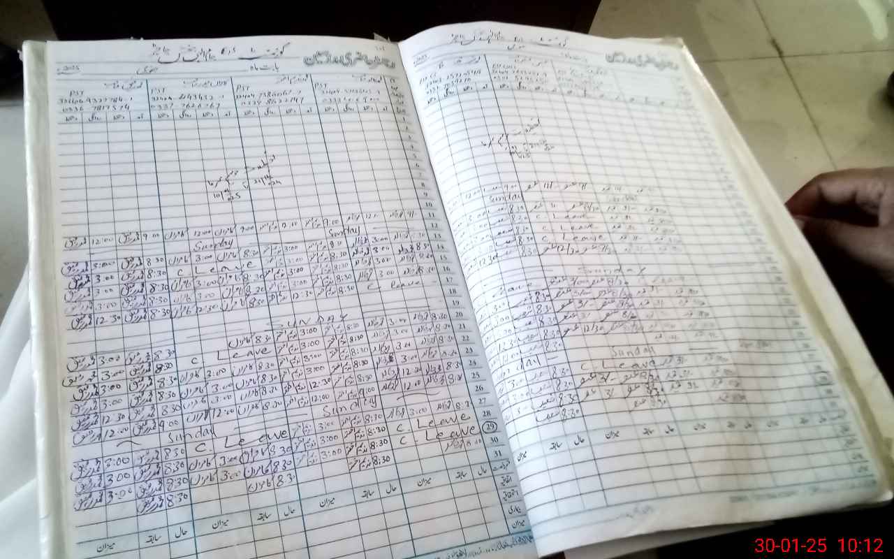 | CNIC | Full Name | Designation | R/C | Absence During Last Calender Month |