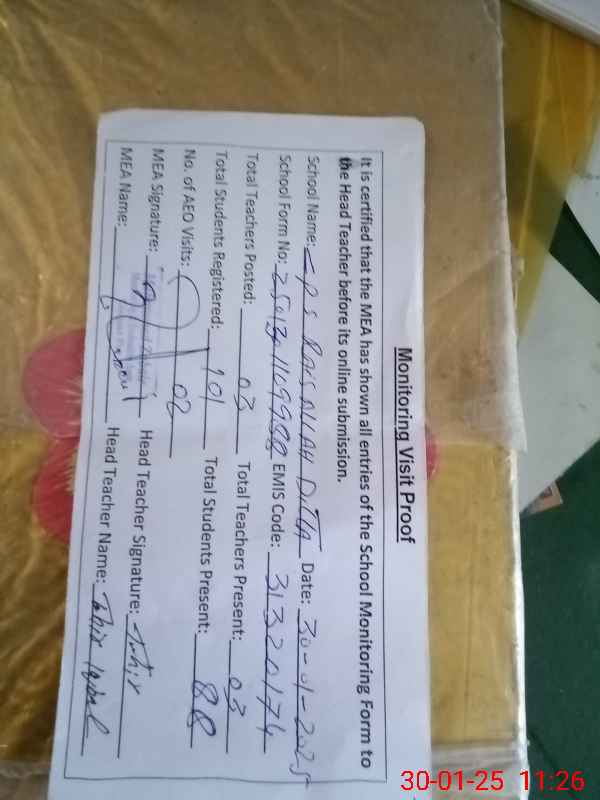 | EMIS Code: 31320174 | Name of School: GPS RAIS ALLAH DITTA | |||