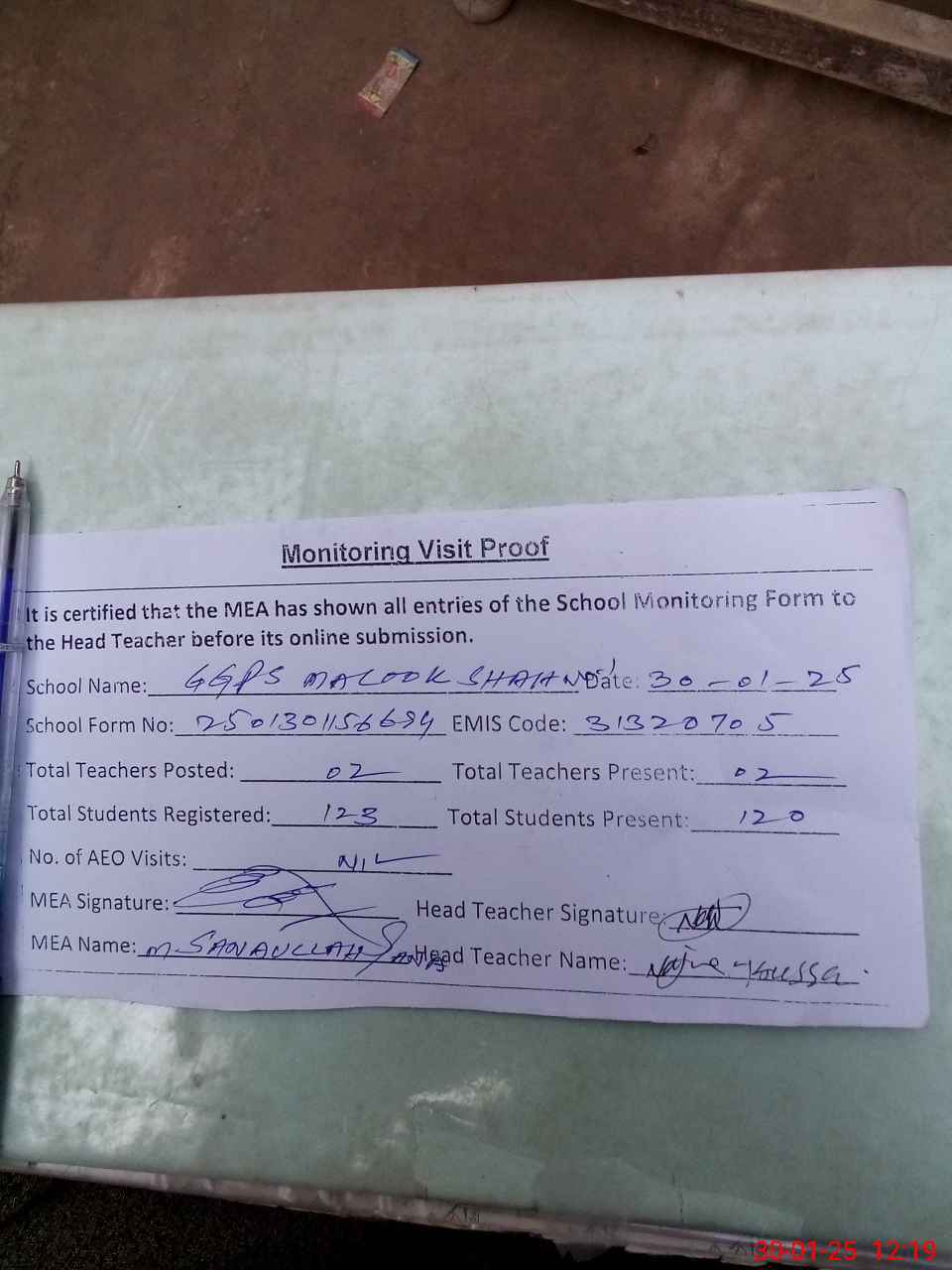 | EMIS Code: 31320705 | Name of School: GGPS MALOOK SHAH NO. 1 | |||