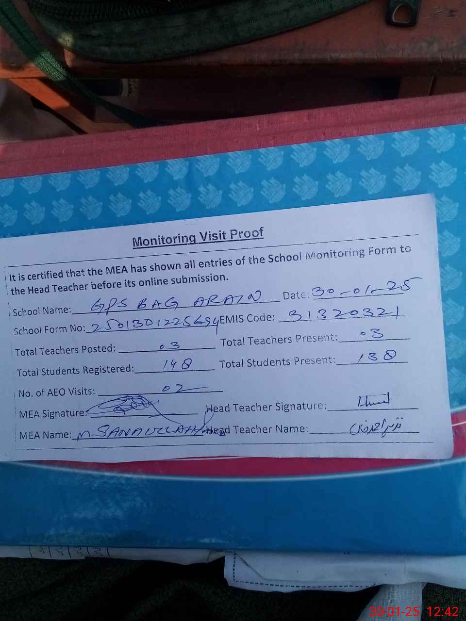 | EMIS Code: 31320321 | Name of School: GPS BAAGH ARAIN | |||
