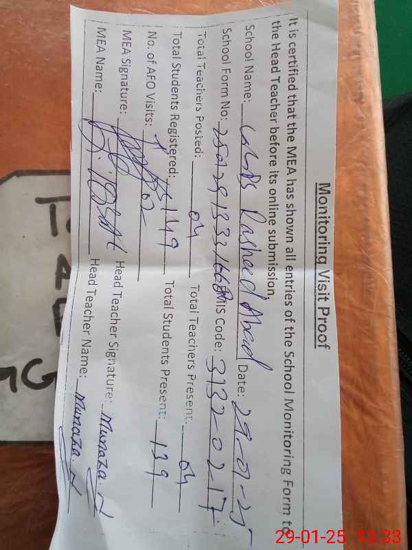 | EMIS Code: 31320217 | Name of School: GGPS RASHEED ABAD | |||