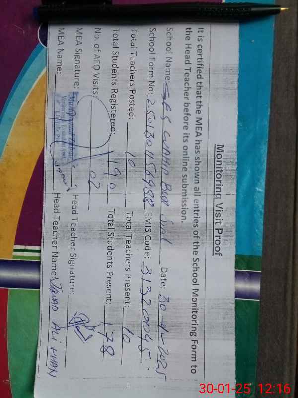 | EMIS Code: 31320045 | Name of School: GES WAHID BAKHSH SIAL | |||