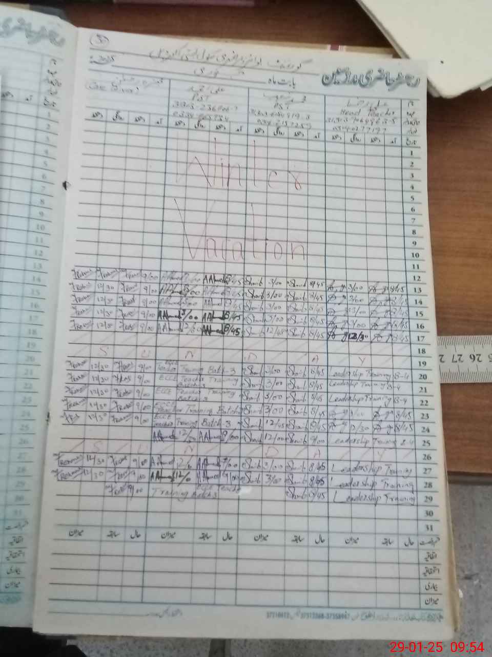| Leave | Duty | Absent | Maternity | Medical | Ex- Pak |