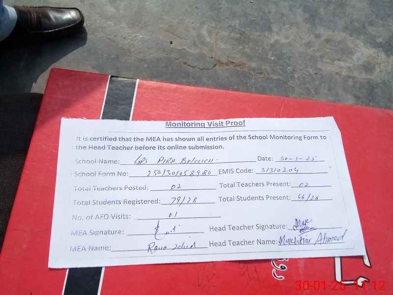| EMIS Code: 31310204 | Name of School: GPS PIRA BALUCH (After Noon) | |||