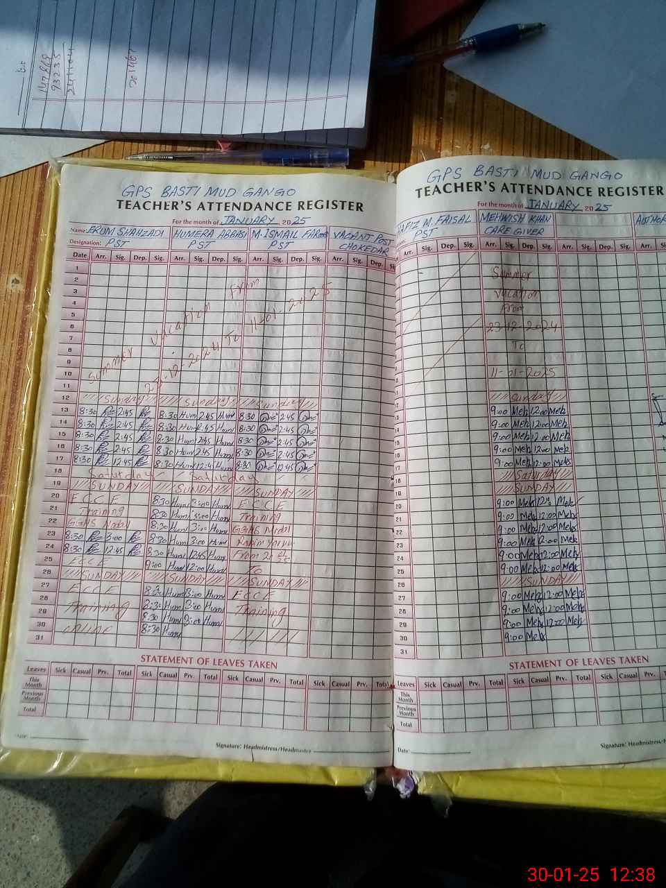 | 31**** | Ha**** Mu**** Fa**** Kh**** | ESE | Contract | 0 | 0 | 0 | 0 | 0 | 0 | 0 | 0 | 0 | Absent (Un-Authorized) |
