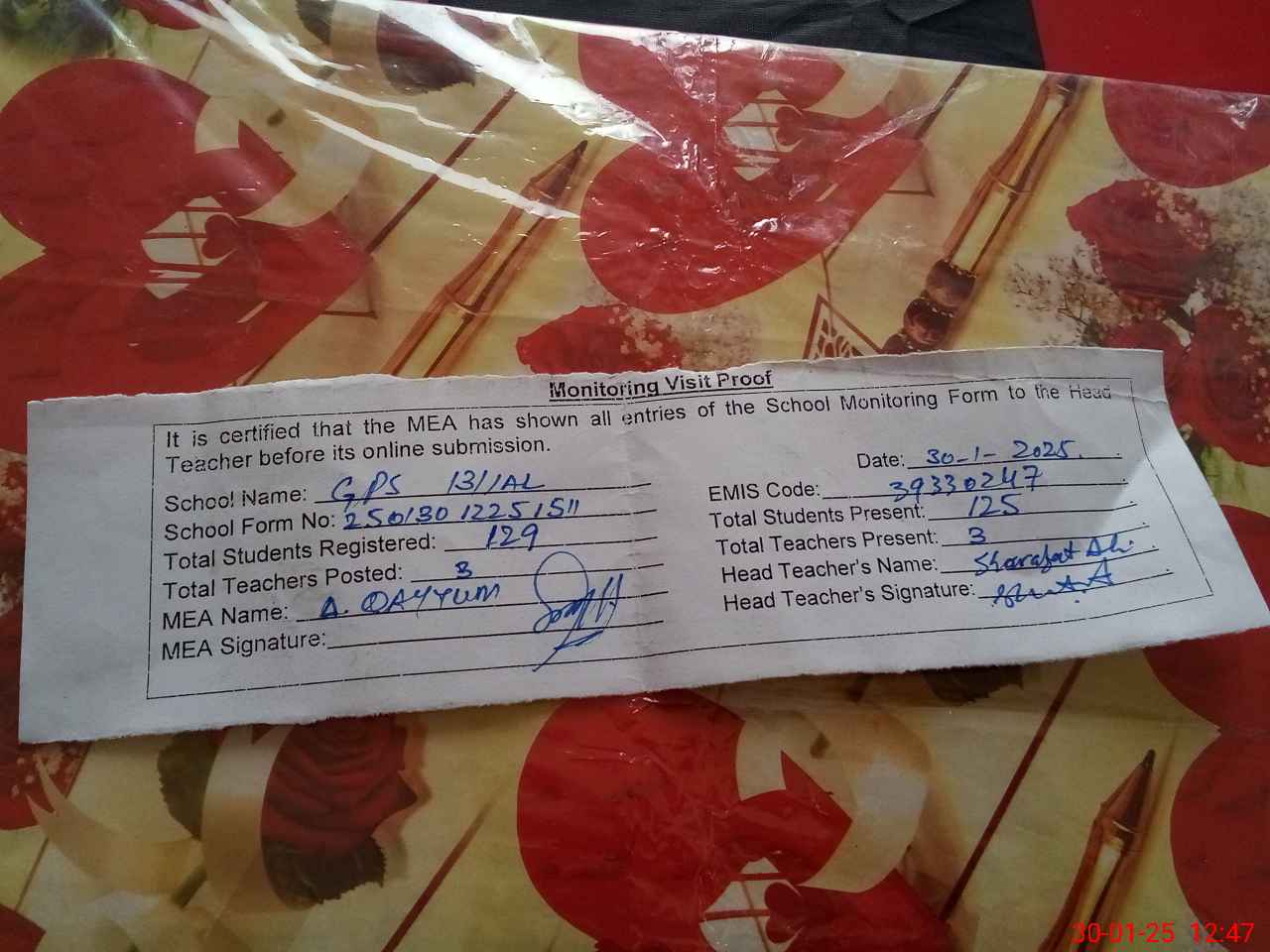 | EMIS Code: 39330247 | Name of School: GPS CHAK NO 13/1.AL | |||