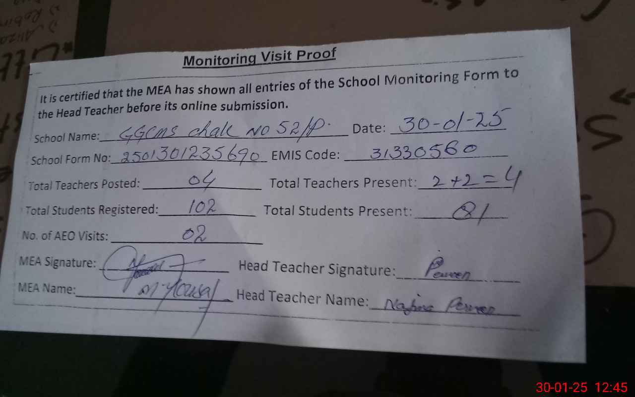 | EMIS Code: 31330560 | Name of School: GGCMS CHAK NO.52/P | |||