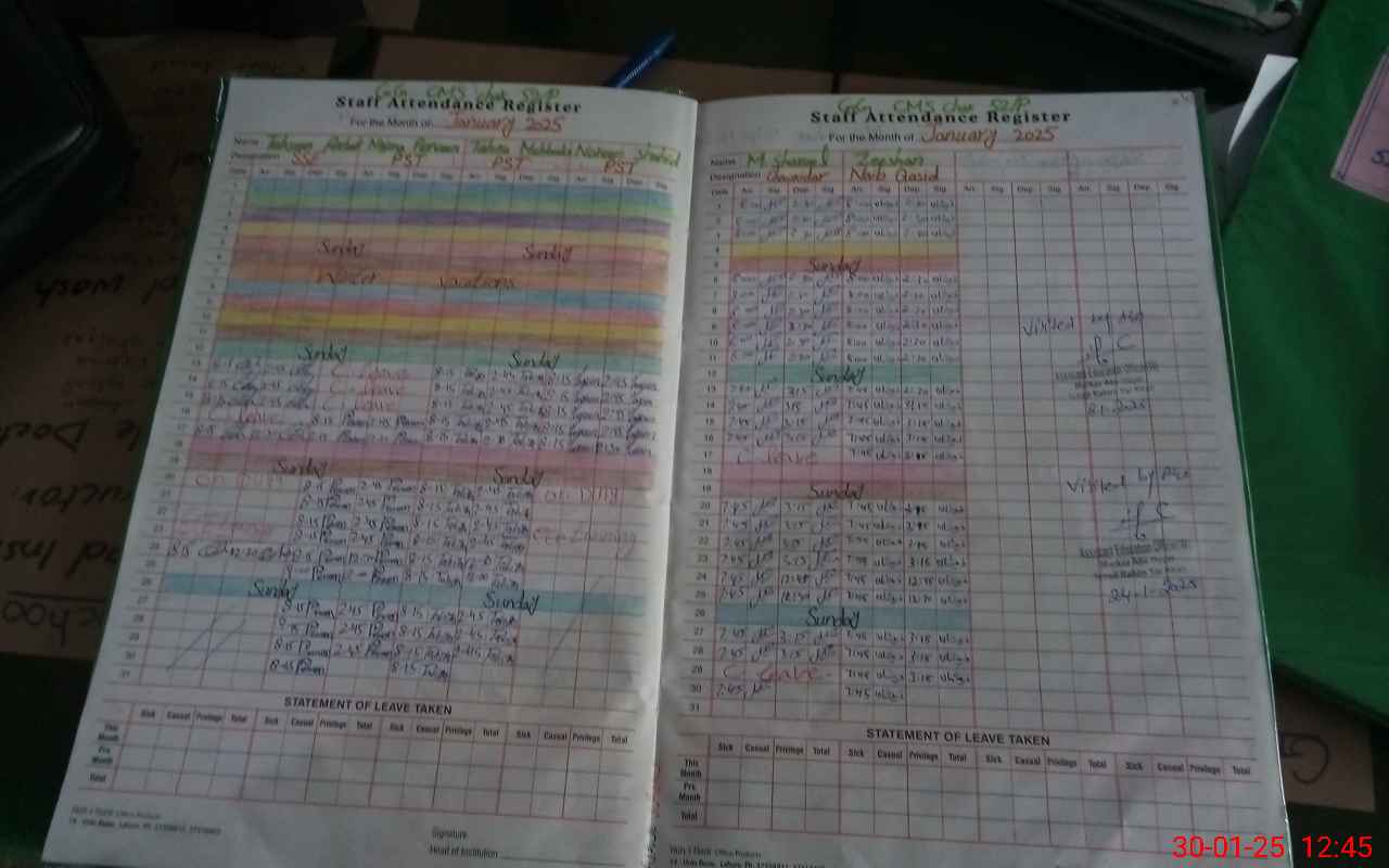 | CNIC | Full Name | Designation | R/C | Absence During Last Calender Month |