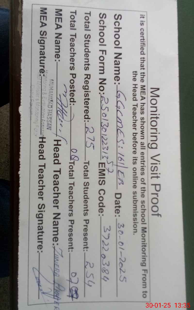 | EMIS Code: 39220384 | Name of School: GGCMES 161 EB ARIFWALA | |||