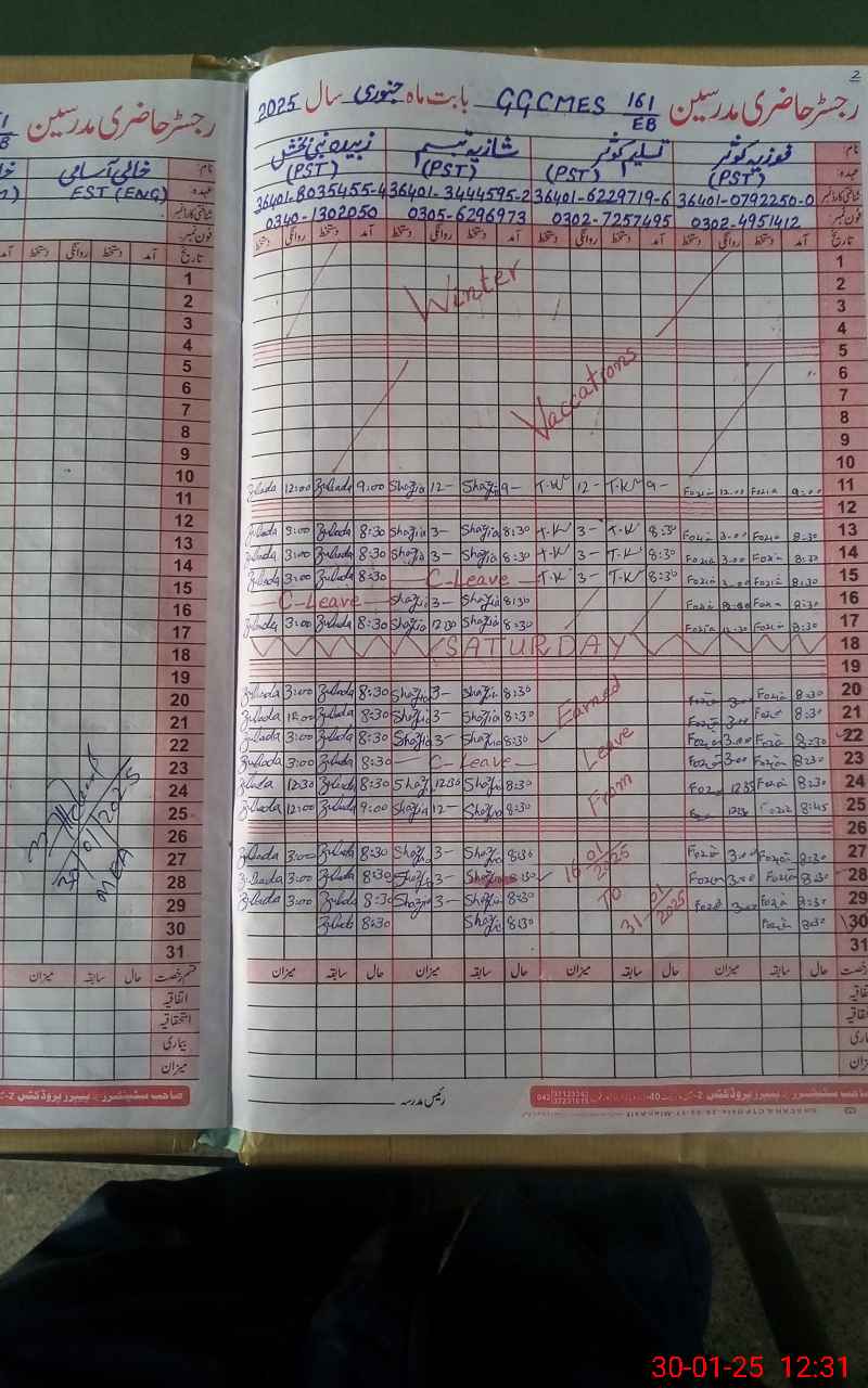 | Name: ZU**** AK**** Designation: (School Headmaster's/Headmistress's) SSE (PHYSICS) Phone/Cell Number: 03**** |