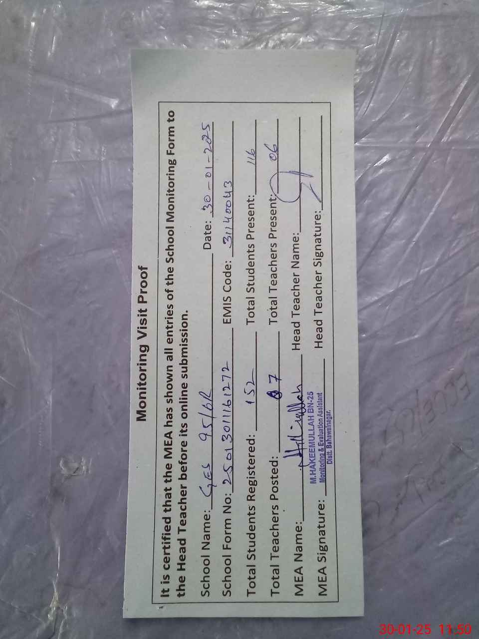 | EMIS Code: 31140043 | Name of School: GES CHAK 95/6-R | |||