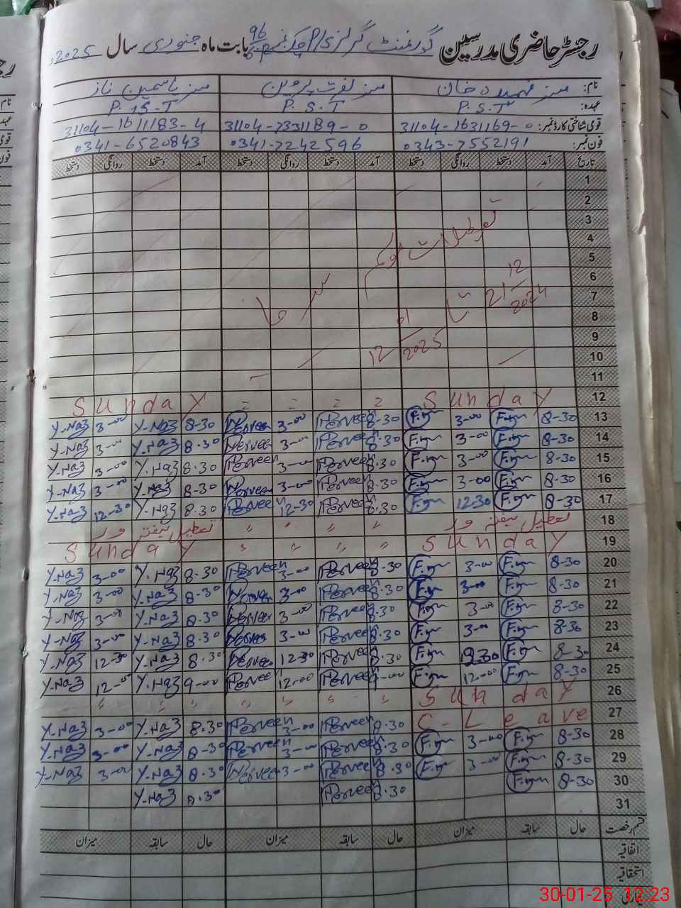 | Name: FE**** KH**** Designation: (School Headmaster's/Headmistress's) PST Phone/Cell Number: 03**** |