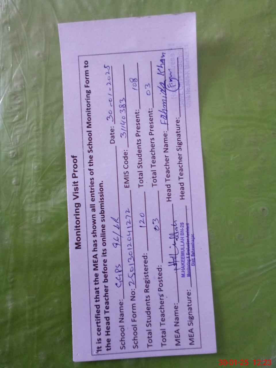 | Certified that this School was Inspected by the Undersigned MEA/DMO Today and the Information Stated Above is as Per Record. | |||||