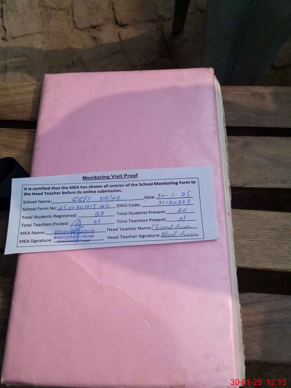 | EMIS Code: 31130329 | Name of School: GGPS CHAK 314/HR | |||