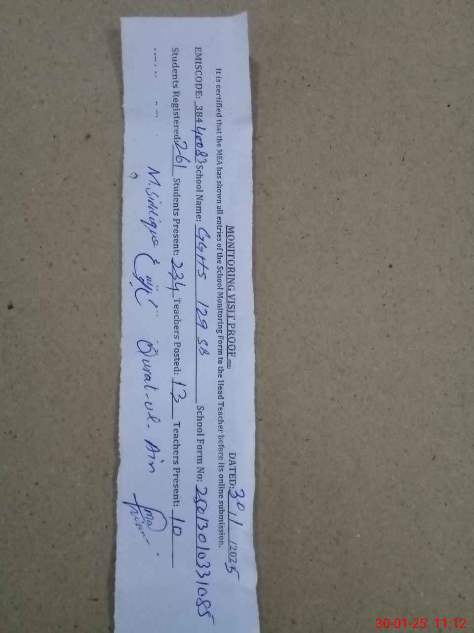 | Certified that this School was Inspected by the Undersigned MEA/DMO Today and the Information Stated Above is as Per Record. | |||||