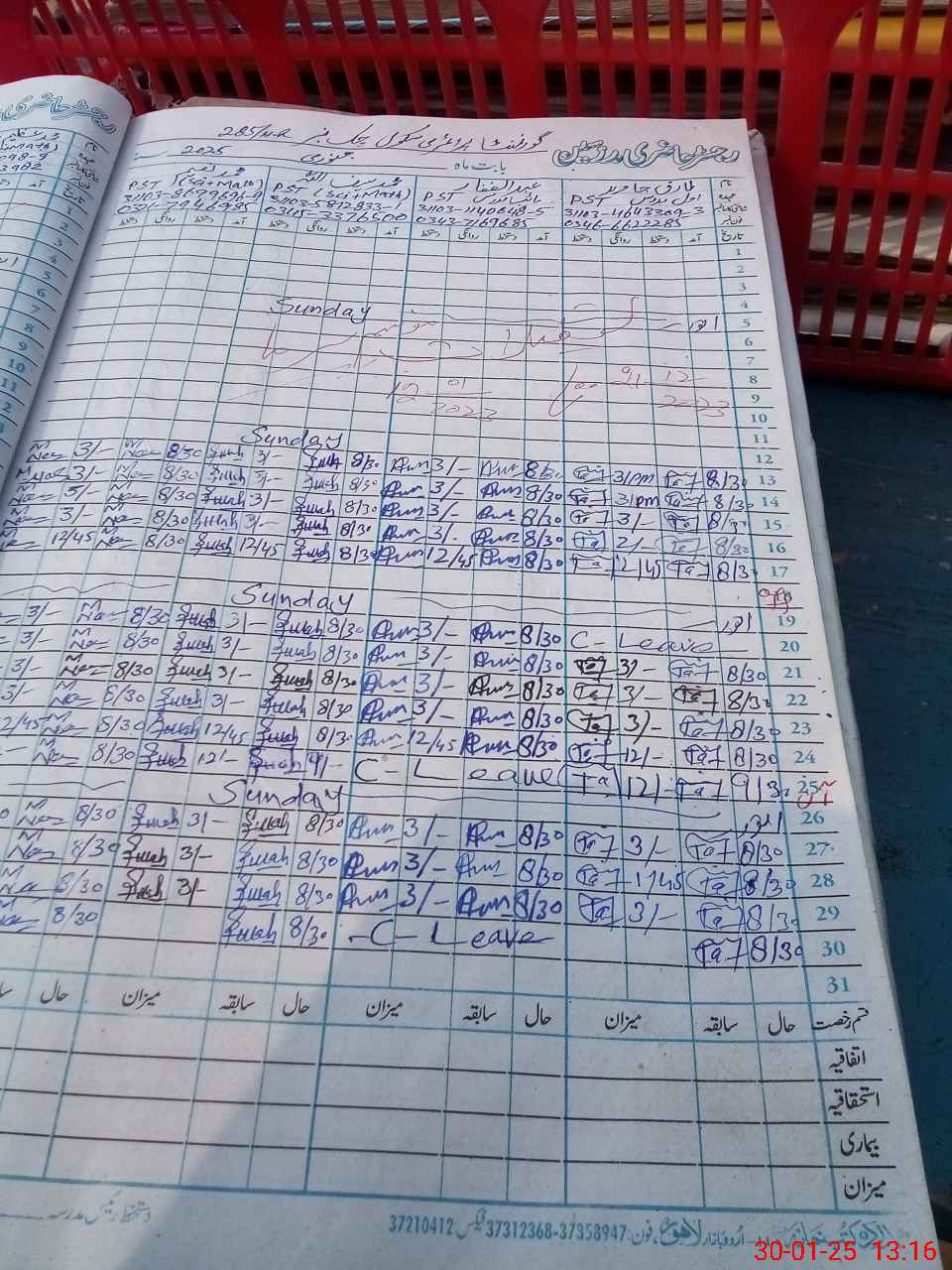 | CNIC | Full Name | Designation | R/C | Absence During Last Calender Month |