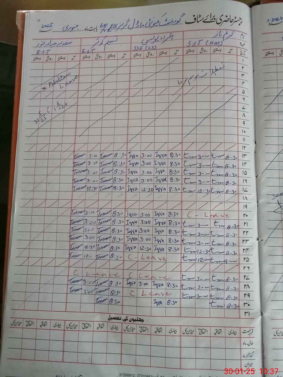 | Name: TA**** NA**** Designation: (School Headmaster's/Headmistress's) SST Phone/Cell Number: 03**** |