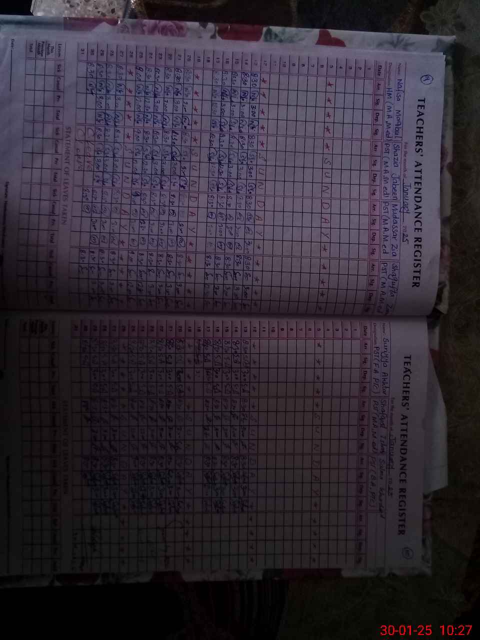 | Leave | Duty | Absent | Maternity | Medical | Ex- Pak |