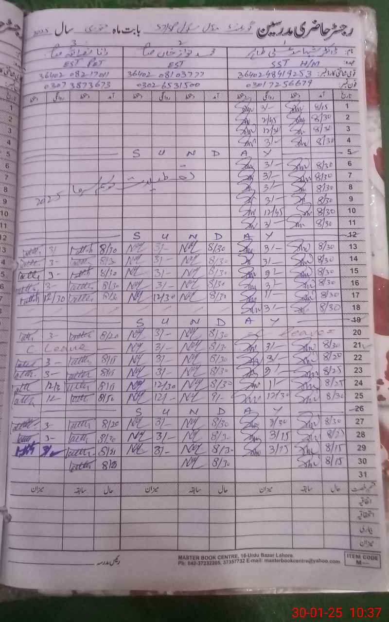 | CNIC | Full Name | Designation | R/C | Absence During Last Calender Month |