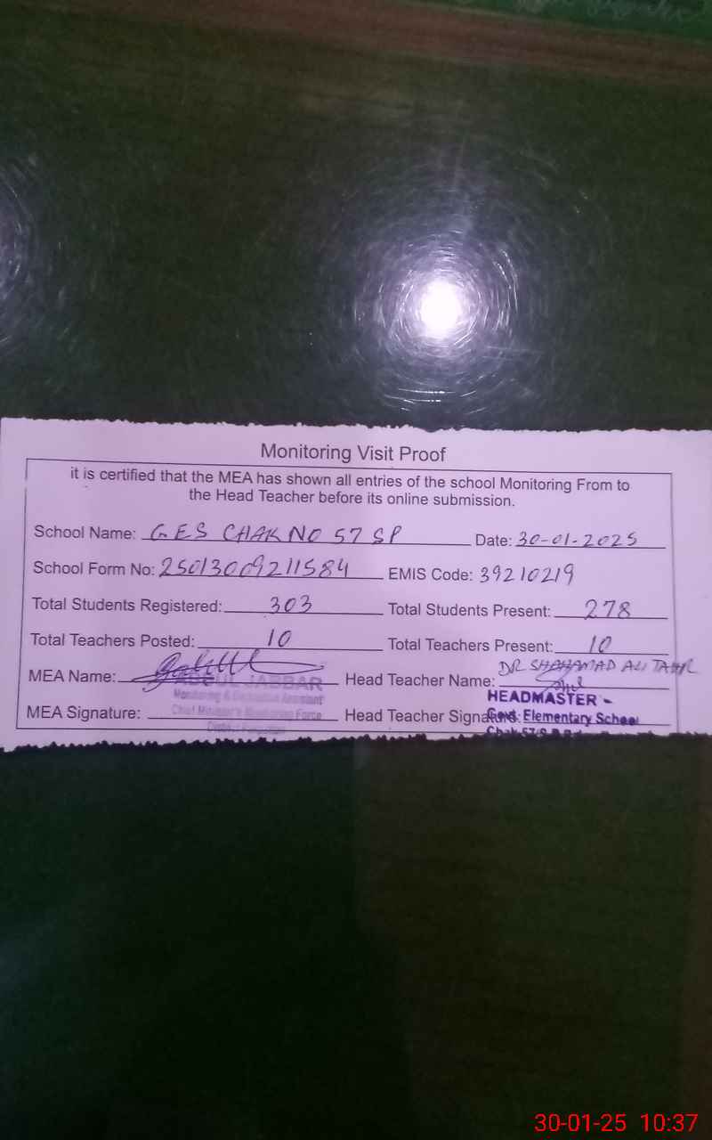| EMIS Code: 39210219 | Name of School: GES CHAK NO. 57 SP | |||