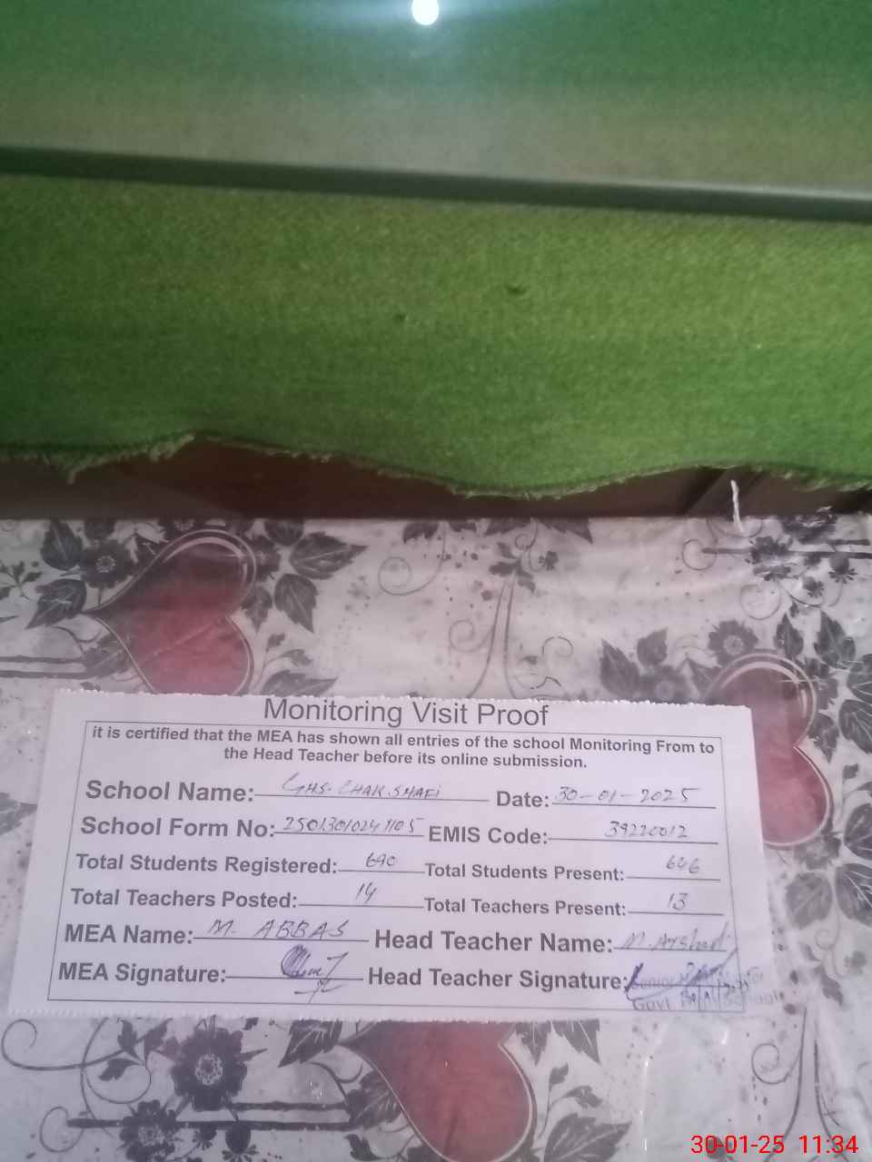 | EMIS Code: 39220012 | Name of School: GHS CHAK SHAFI | |||
