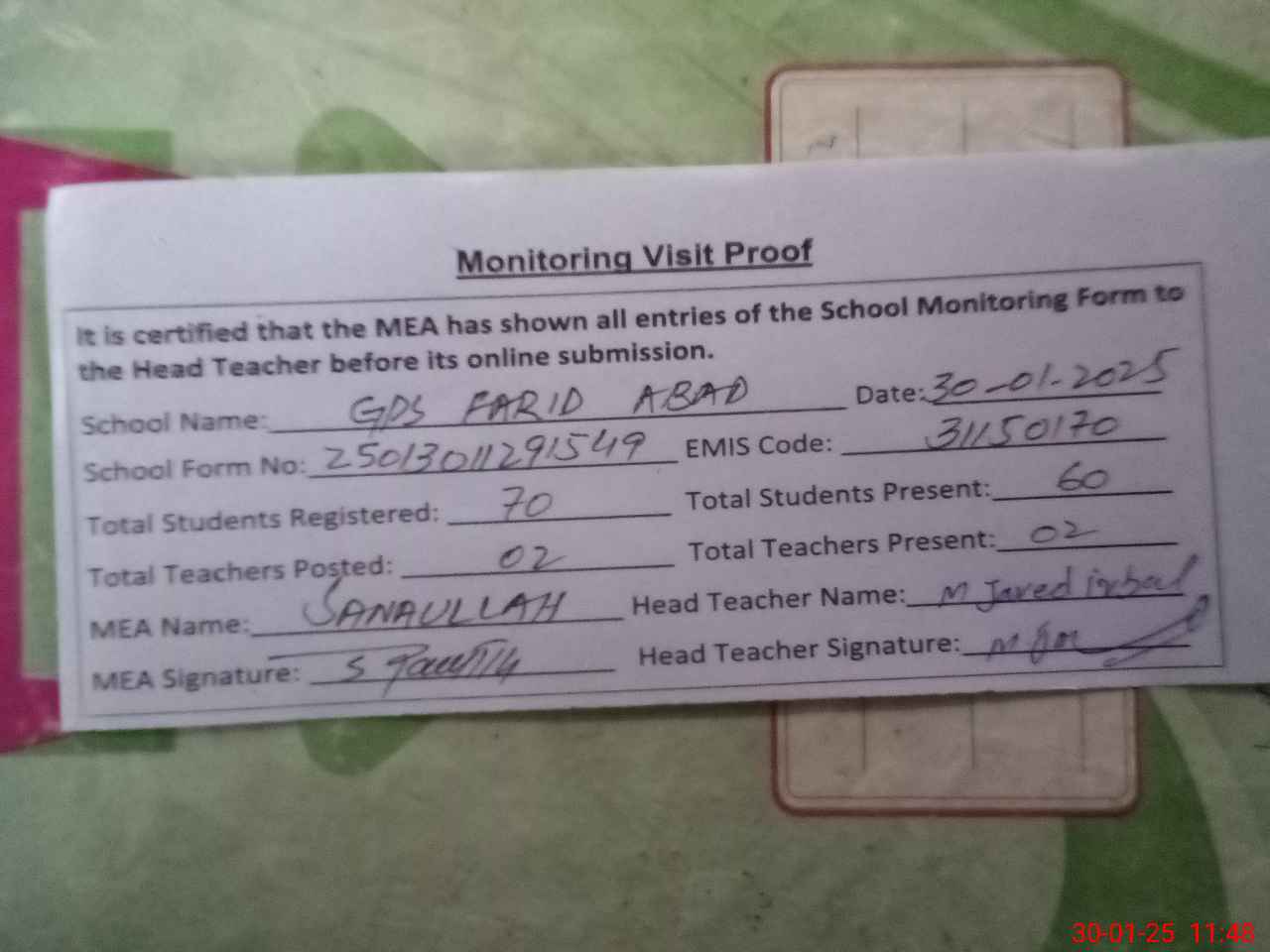 | EMIS Code: 31150170 | Name of School: GPS FARID ABAD | |||