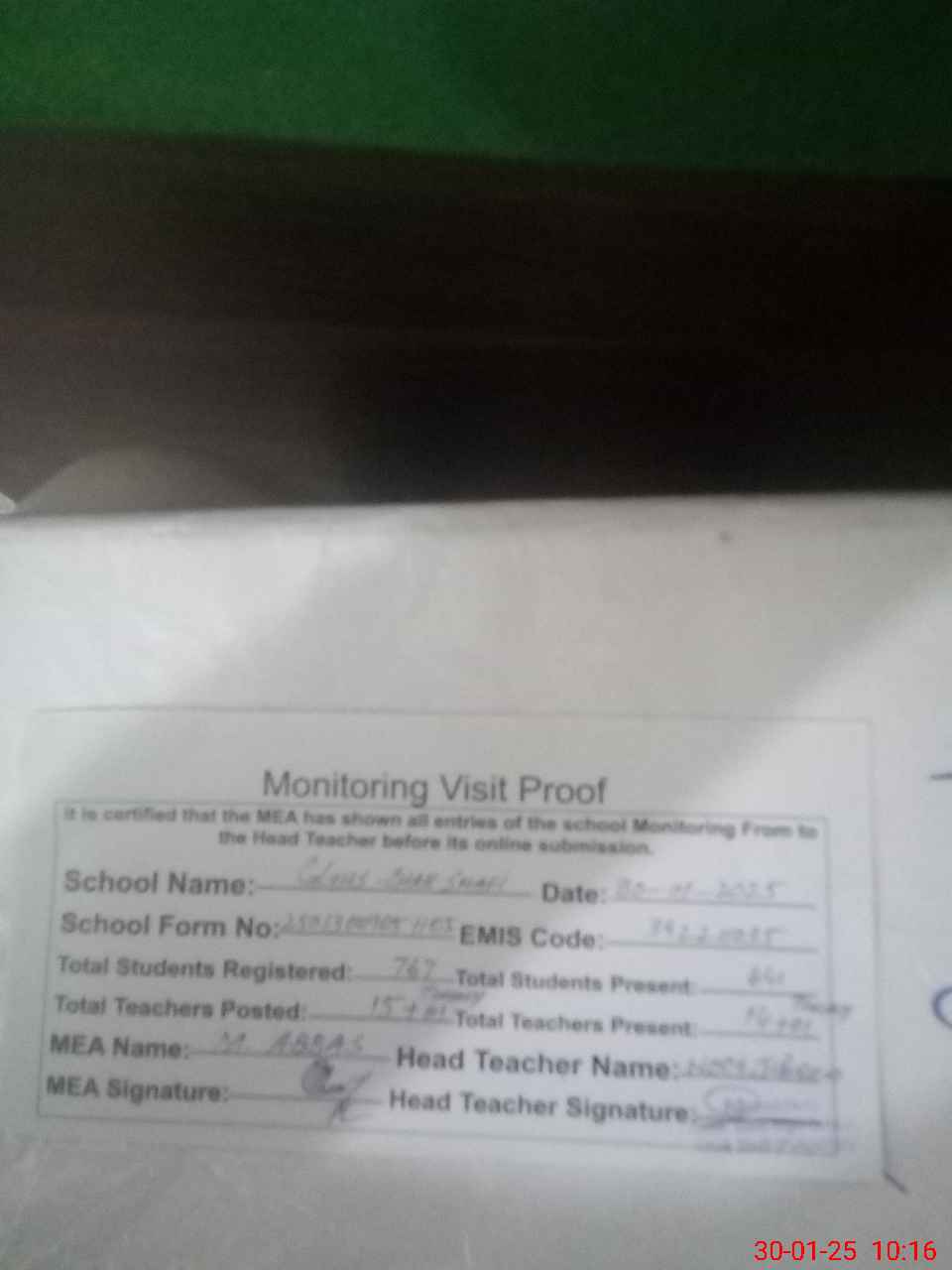 | Certified that this School was Inspected by the Undersigned MEA/DMO Today and the Information Stated Above is as Per Record. | |||||