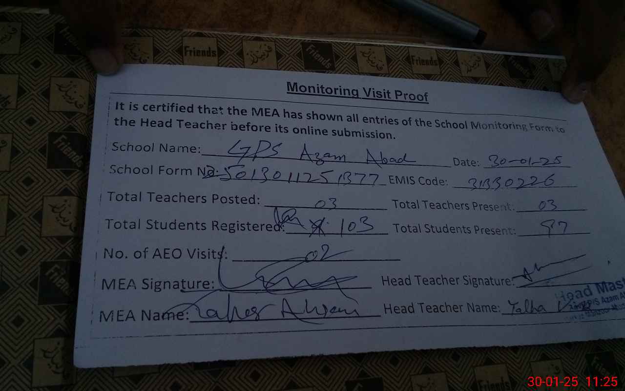 | EMIS Code: 31330226 | Name of School: GPS AZAM ABAD | |||