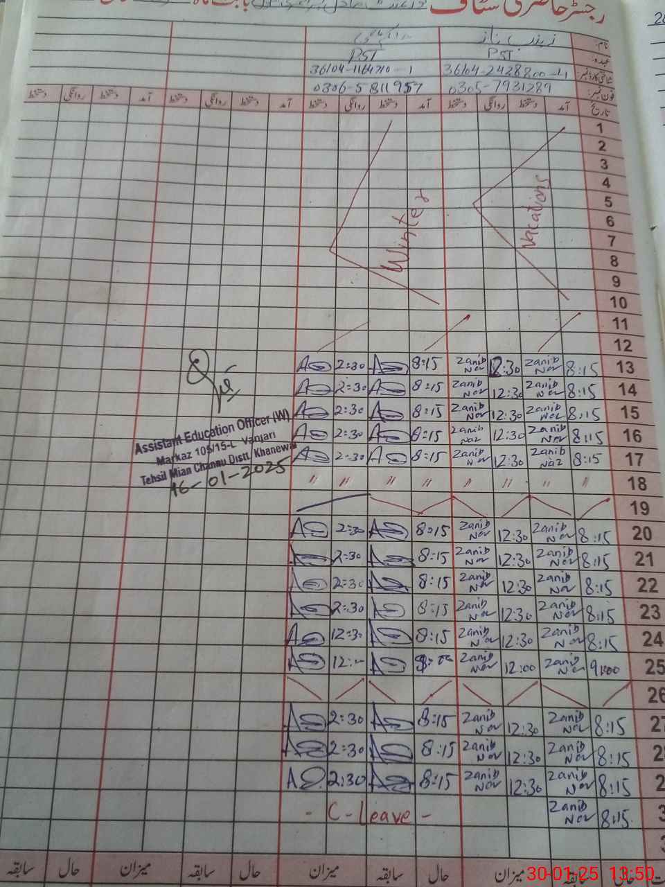 | Name: Za**** Na**** Designation: (School Headmaster's/Headmistress's) PST Phone/Cell Number: 03**** |