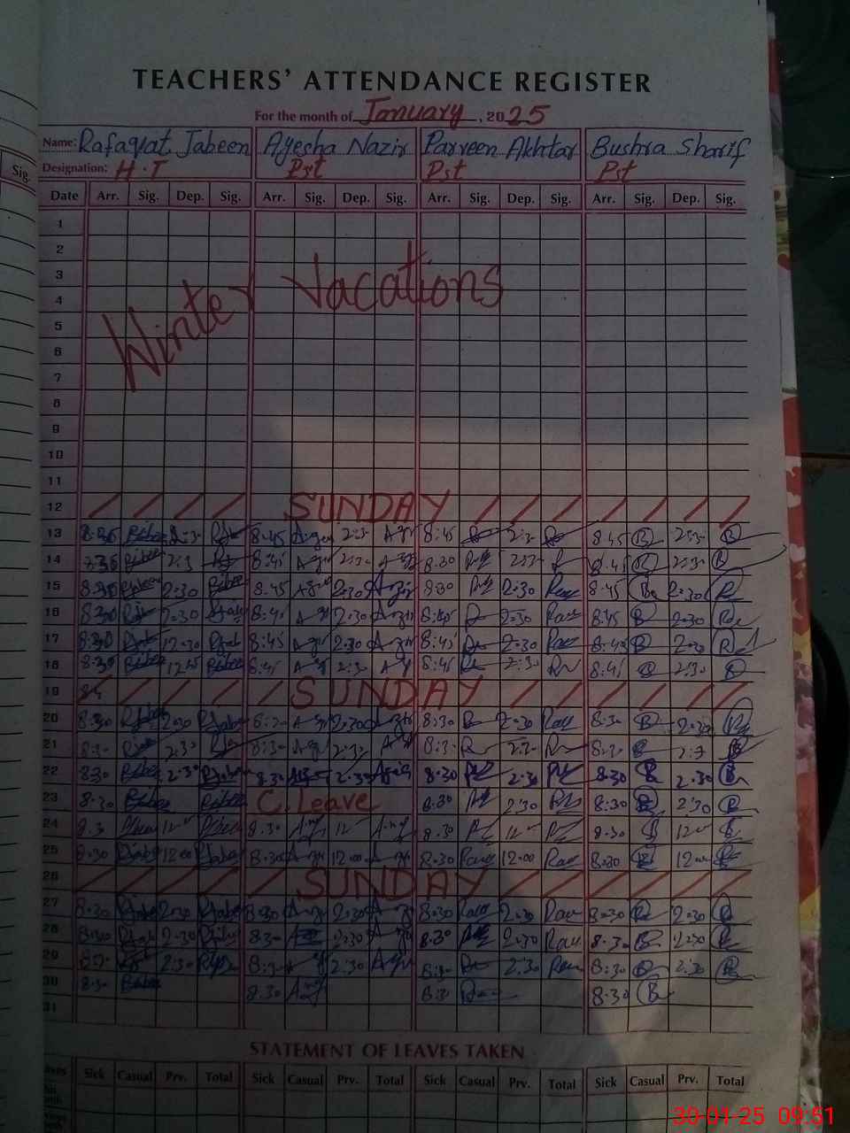 | CNIC | Full Name | Designation | R/C | Absence During Last Calender Month |