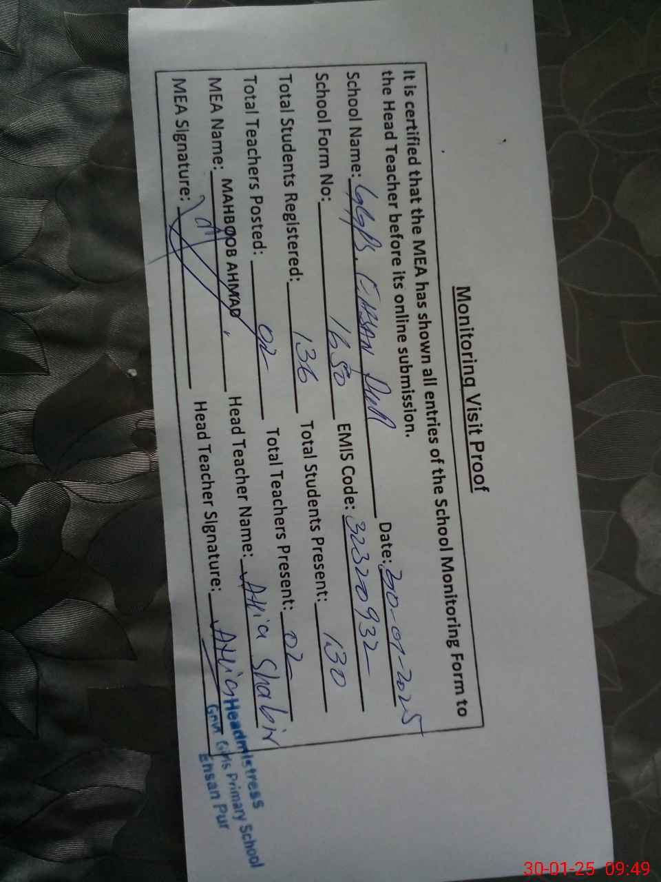 | EMIS Code: 32320932 | Name of School: GGPS EHSAN PUR | |||