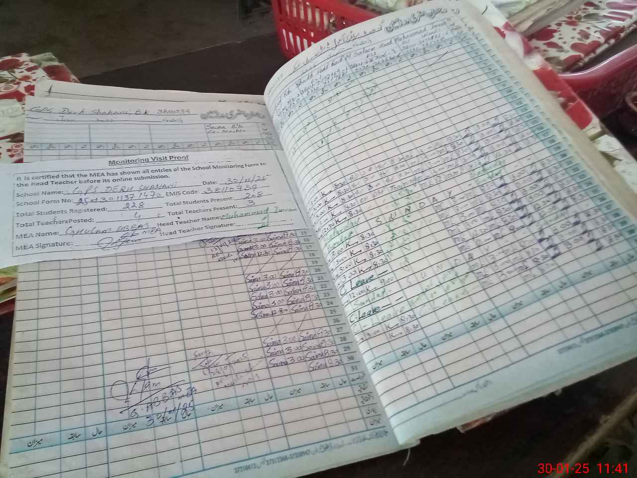 | Attendance Register | Head Teacher | MEA with School | Visit Proof |