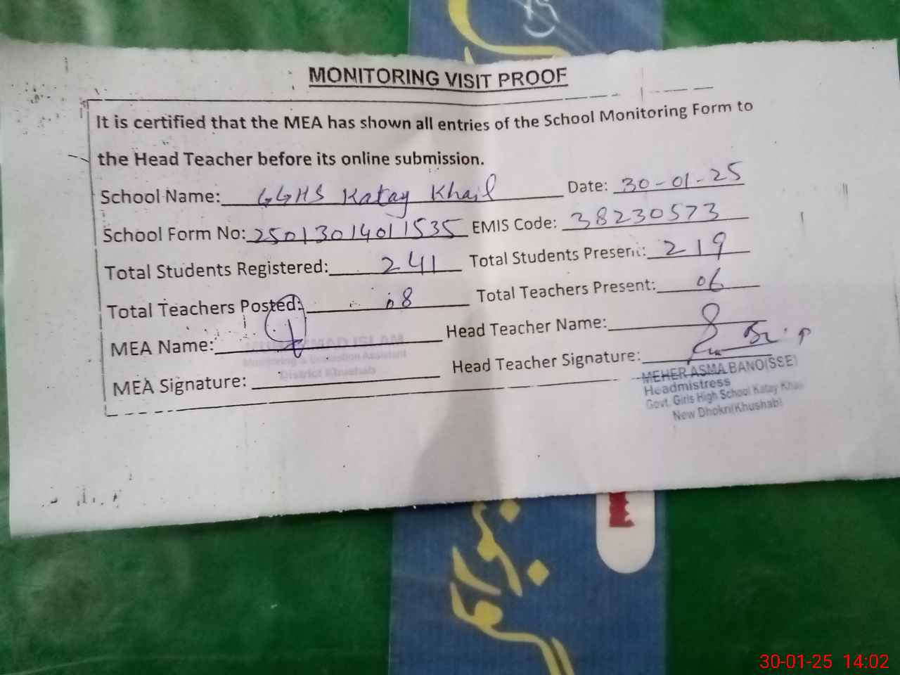 | EMIS Code: 38230573 | Name of School: GGHS KATAY KHAIL | |||