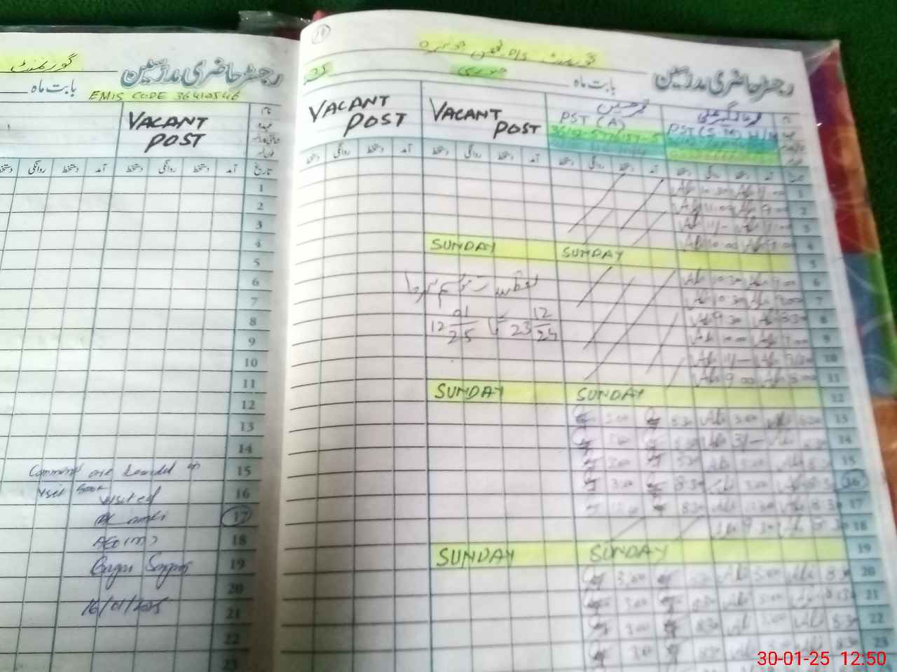| CNIC | Full Name | Designation | R/C | Absence During Last Calender Month |