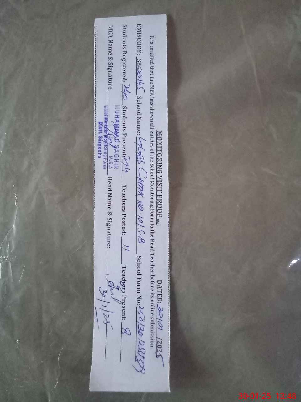 | Certified that this School was Inspected by the Undersigned MEA/DMO Today and the Information Stated Above is as Per Record. | |||||