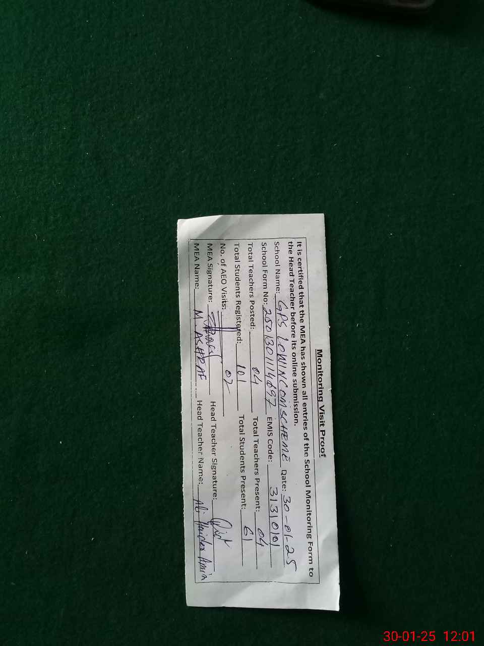 | EMIS Code: 31310101 | Name of School: GPS LOW INCOME SCHEME BASTI WAJID ABAD | |||