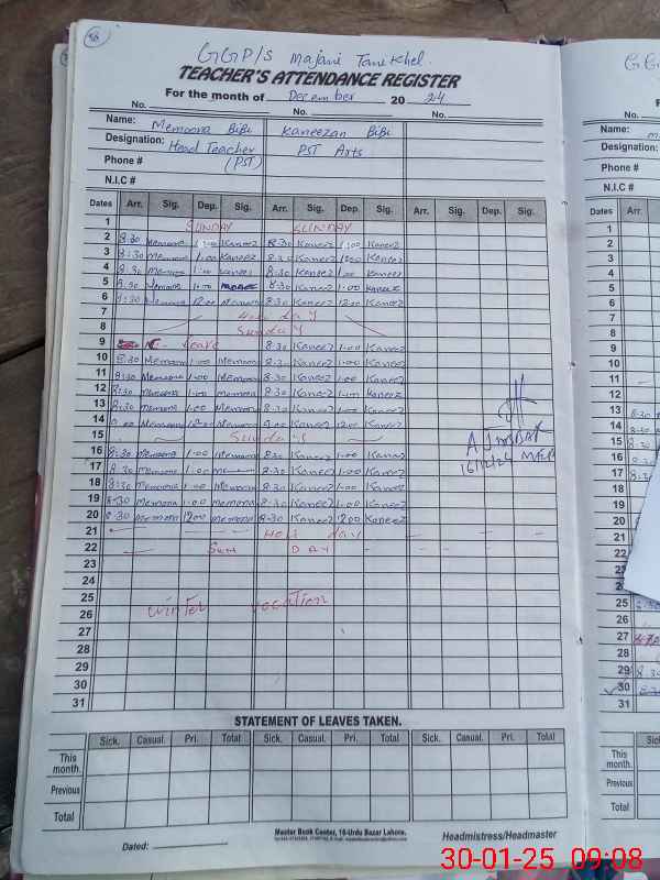 | Name: KA**** BI**** Designation: (School Headmaster's/Headmistress's) PST/PTC/JV Phone/Cell Number: 03**** |