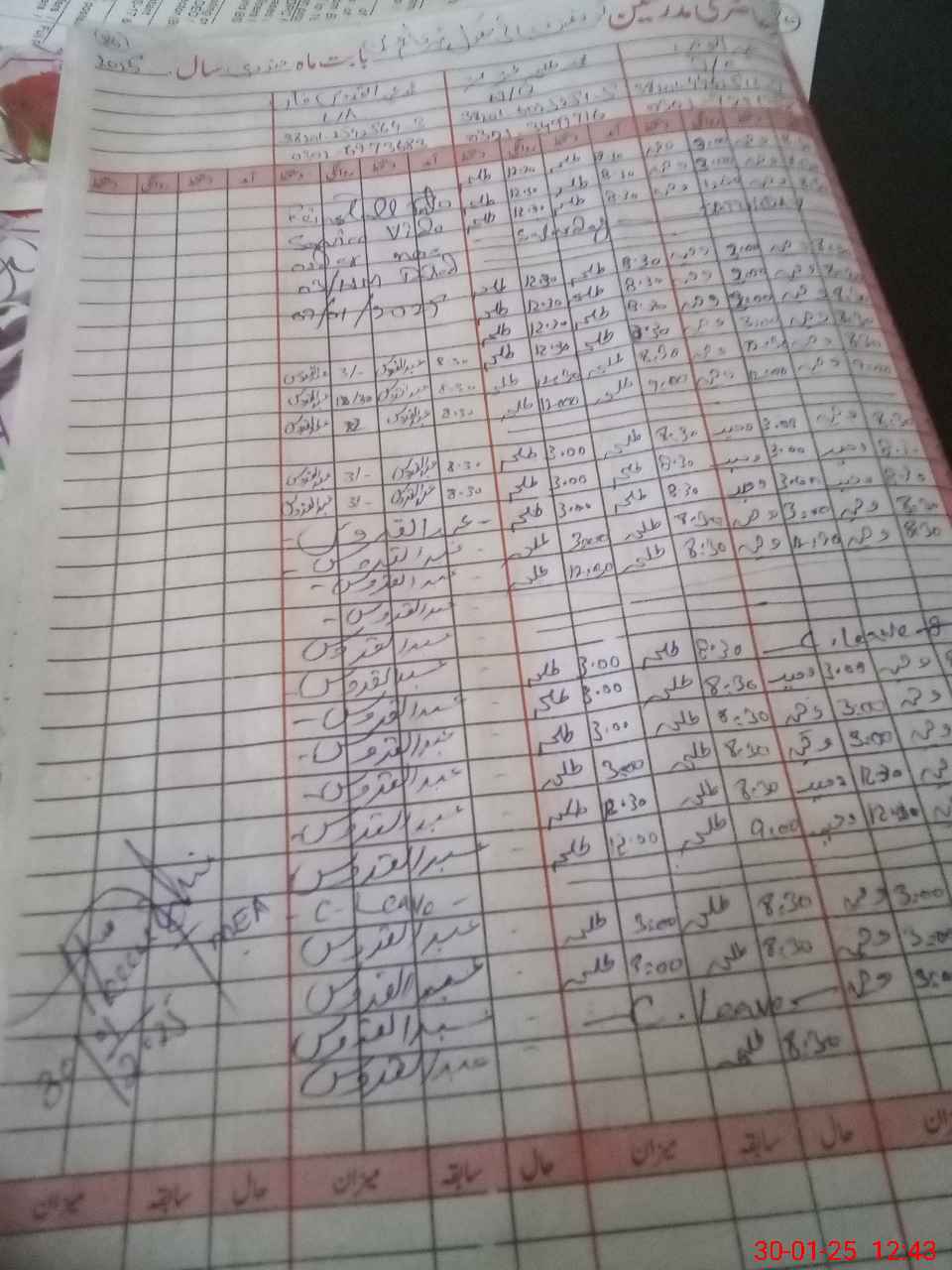 | CNIC | Full Name | Designation | R/C | Absence during last cal. month |