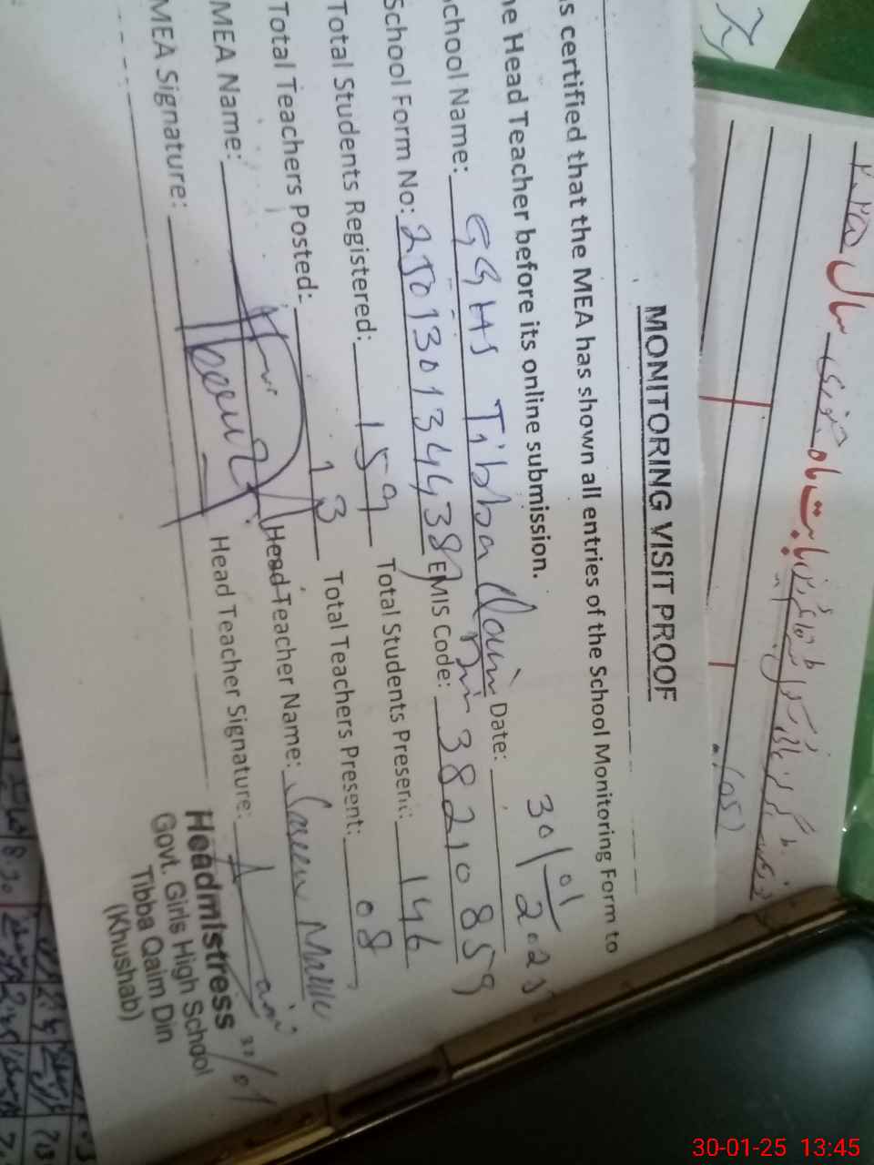 | EMIS Code: 38210859 | Name of School: GGHS TIBBA QAIM DIN | |||